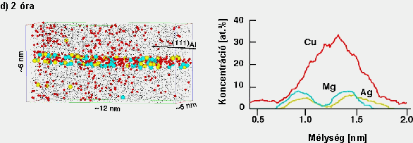 kiderül, hogy a Cu, Ag és Mg mind a kiválás belsejében találhatók. Míg a Cu koncentrációja 20-25%-ra nőtt, és a Mg-é nem változott jelentősen, az Ag mennyisége vi szont 10%-ra csökkent.
