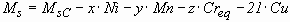 A Ni és Mn Ms hőmérsékletre gyakorolt hatása szintén lineáris, a karbontartalom változása a többi elemhez képest kicsi, ezért az austenitképző elemek együttes hatása jó közelítéssel: