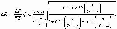 Az összefüggésben szereplő k értéket [62] alapján k=1.28-ra választottuk, D KI és D KII értékét pedig az alábbi összefüggésekkel [54, 60] számítottuk: